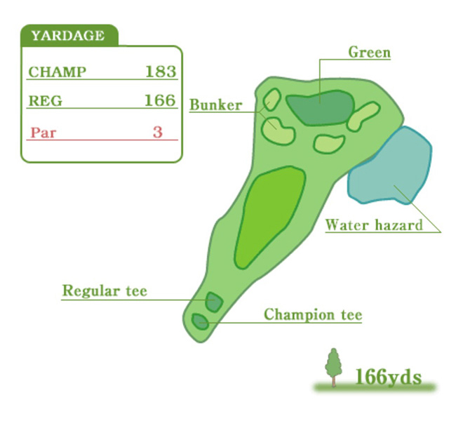 グリーンの右側に池があります。CHAMPION REGULAR 183 166